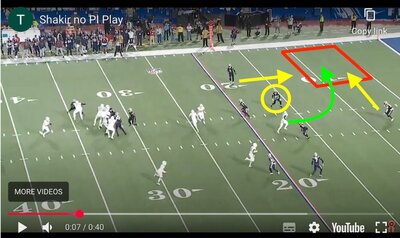 I don't think it's nearly as open as you do, both the CB and the Safety are watching Allens eyes and where he's looking. Gonzalez(CB) is already getting depth and as you move the frames forward the Safety, flips his hips as Samuel starts flattening his route. Allen would have to put air on the ball to get it over the LB, so he's not throwing a rocket. Which allows both the CB and Safety to cover that hole you are suggesting Allen can get the ball into. I've freezed the frame at Allens drop back, when he would have had to make a decision on throwing to Samuel. -