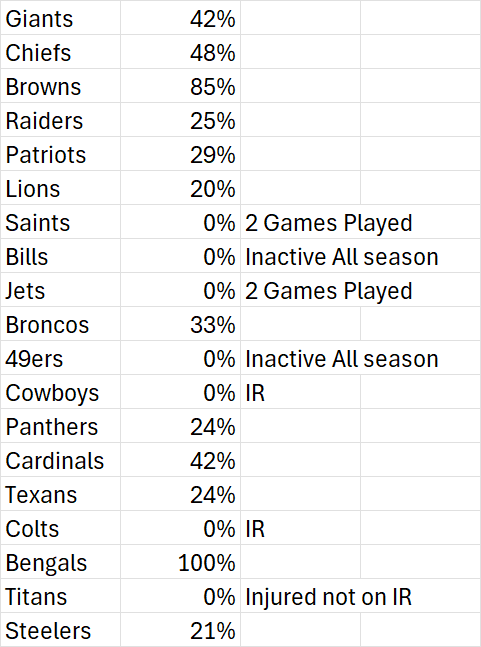 This is a corollary to the Landon Jackson thread so feel free to merge. I looked at the top 19 picks in the 3rd round. I don't have much of a life but I do want to get in the workshop tonight so I just did the top half. That is 19 picks as there were 38 picks. Bills drafted Landon Jackson with the 8th pick in the 3rd round so just about in the middle of this sample. See the table below. These numbers represent snap count percentage for week 4. Data source link below. I have no idea how accurate it is. https://www.footballguys.com/stats/snap-counts/teams?team=ARI&year=2025&type=snap-counts Only two other players have been inactive all four games and only one other has been a healthy scratch - a 49ers LB. The Titans WR has been injured but not on IR. Two had season ending injuries in camp and are on IR. Two had no snaps in week 4 but had snaps in 2 of 4 games. All the others that played in week 4 also played in weeks 1-3. It is data and you can judge it however you want. There is a mix of good and bad teams. There is a mix of positions. My take is that it is reasonable to expect a 3rd round pick that is not injured to be dressing on game day and playing in some capacity.