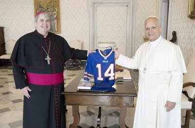 The Bishop of the Diocese of Buffalo is at the Vatican meeting with the Pope, and got this picture. I always knew Leo liked the Bills.