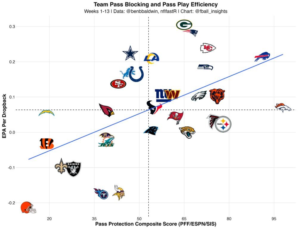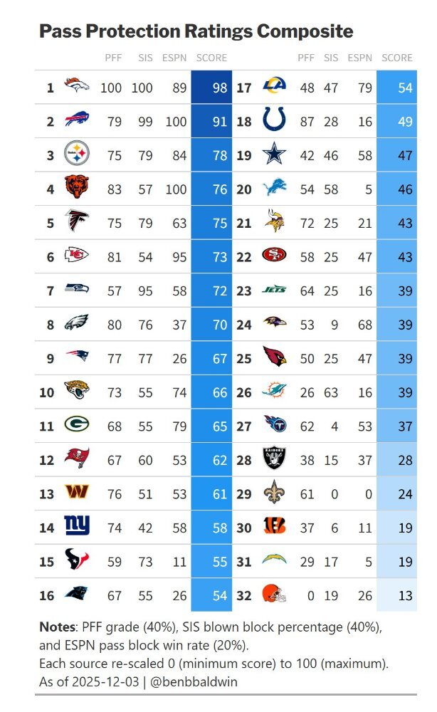 Arrived at with 3 composite scores (PFF/ESPN/SIS); best is top right corner, worst bottom left corner. https://x.com/fball_insights/status/1996378570596536685/photo/1