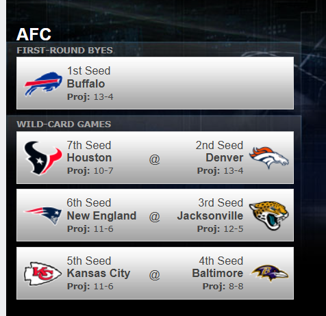 Would be extremely surprised if they ran the table if they got it This is an Old slow Kansas City Chiefs team.. you've been watching the NFL for 30 40 50 years there's every reason to know that teams hit bottom As much as people are complaining about the bills we out coached them and smack them in the mouth That would have Buffalo playing Pittsburgh and that would be a great first round matchup -