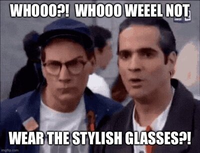 They're womens glasses. One of the VPs at work got same ones recently and I absolutely couldn't resist asking him when he was going to start wearing a dress to work. Dorquemada making friends everywhere he goes