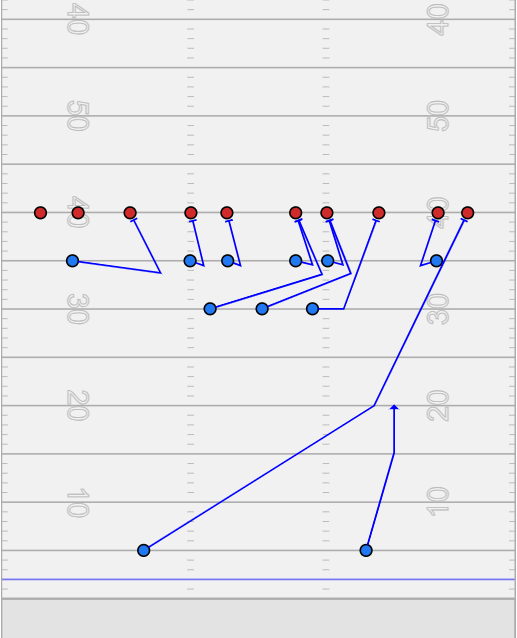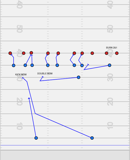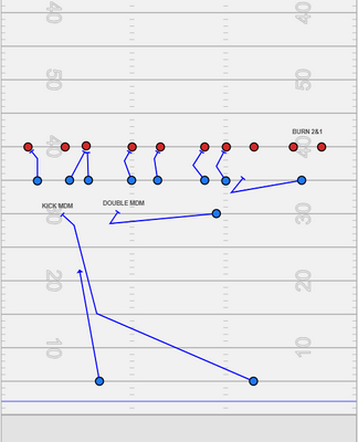 Tabor did a great job showing multiple returns in the Bills game this weekend. Below is a breakdown of two that popped because of fantastic execution by the entire unit. This first one is the one Mecole Hardman returned. The Bills set up a sideline return where they doubled the 3 to the return side and kicked out the 1&2 with our widest guy and the off-returner. The natural cross-block that occurs creates an extra gap and widens the lane for the returner. Everyone else up front is working to reach the guy aligned head up on them except the furthest guy away, he will work to pick up #3 away and the unit will burn #1 & #2. This second return was to Davis. As you can see they came out with a different alignment. This return is designed to go to either side based on which way the ball is kicked. Ultimately it worked very similarly to the first one where you get a naturally kick from the off-returner as well as the widest guy to the side of the kick on the 30. The other two are just looking to scoop the most dangerous man coming free inside them to create the natural lane for the returner inside 1, 2, & 3. Like the first scheme, the front line with look to reach the man head up to inside of them, and will burn the backside #1 & #2. It's interesting the Buccaneers didn't adjust their numbers on their coverage team, something we clearly took advantage of.