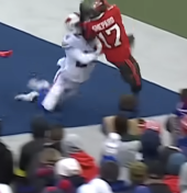 I took a look and nobody seems to have mentioned this. Including the game announcers. On Tampa's second attempt at a 2 point conversion, Sterling Shepard made the catch but out of bounds. But he would've been inbounds except for the beautiful play by Bishop. Shepard went up two or three yards from the boundary and was going to come down in bounds but Bishop was right behind him and he just carried him right out of bounds so he couldn't get even one foot in. Happened at 13:35 in the fourth quarter, and held the Tampa Bay lead to one point instead of three. It was a really nice play. Didn't turn out to be important. But it could have. Beautiful play with good awareness, body control, speed and strength.