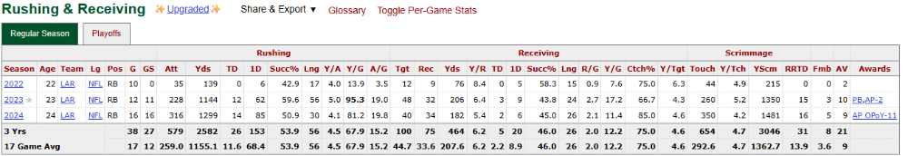 Doc Brown Posted August 5 Posted August 5 They should be valued similarly. Cook is more explosive but limited because the Bills don't trust him in pass rushing. Kyreen Williams had the most percentage of running back runs on the Rams by one running back for his team than any other running back did for his team in the league. That includes Barkley and Henry. Quote