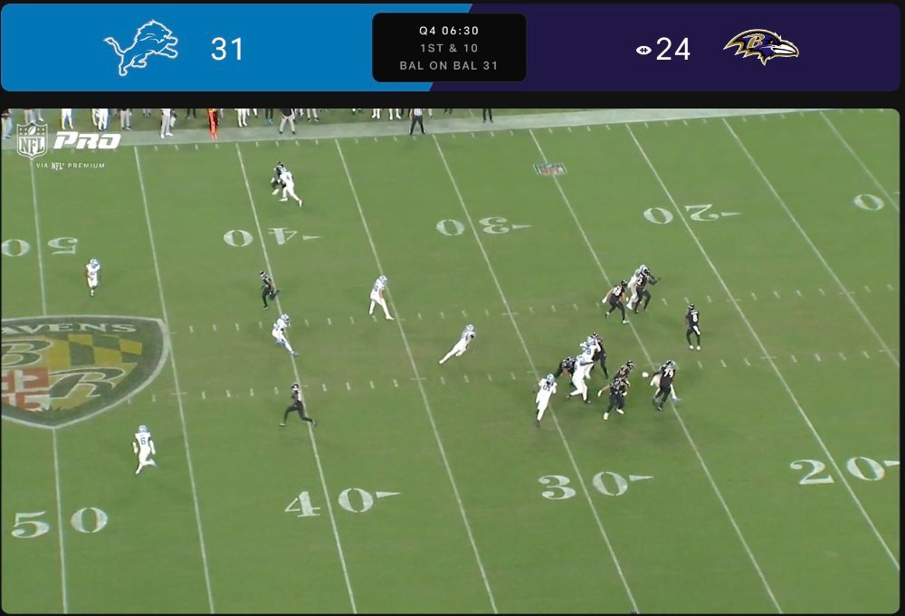 Low Positive Posted September 23 Posted September 23 (edited) I'm looking at the all-22 for the 4th quarter sacks. The reason I'm doing this is that the Lions will get credit for 7 sacks, but almost all of them came pretty long after the snap. I am interested in if this was good coverage or was it something else. From what I can tell, the Lions went against their tendencies and started mixing in some zone. In the play I'm looking at, I would even ID it as some form of cover two zone in Madden (two high safeties, CB's off the line, and no one went with the man in motion). But the Ravens ran a play that seems to be designed to be a man beater. The screenshot that I attached is a little over a second before Hutchinson sacks Lamar. Look at all that space in the zone! If Tez Walker stops and turns around, that's an easy first. But he doesn't because the play called for deep crossing routes. It seems to me that the wrong play was called against the defense, and even I could have IDed that defense as a zone pre-snap. Jackson needed to change the play at the line. Edit: I looked at it again. They had DJ Reed in man coverage on Zay Flowers on the top of the screen, but they were in a zone everywhere else. And looking at it from the EZ cam, he was staring down Flowers the whole play. Never even looked at the middle of the field. Edited September 23 by Low Positive 2 Quote