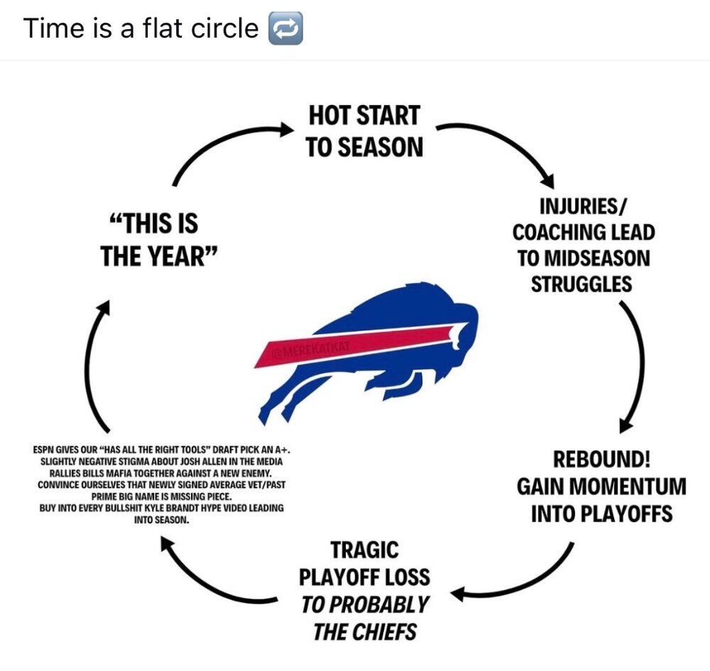 buffaloboyinATL Posted 10 hours ago Posted 10 hours ago 5 hours ago, Nester said: time is a flat circle, thanks goodness for the BYE. Could be worse, could be Baltimore. Chin up pals, we got this. I like the defiant faith! 1 Quote